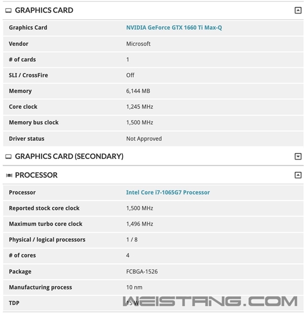 Surface Book 2笔记本还是2017年10月份发布的,如今已经进入第四个年头,而在这两年多的时间里,Surface Pro、Surface Laptop都已经升级了两代了。 现在,3DMark数据库里出现了两台来自微软的设备,看起来像极了Surface Book 3。 它们都配备了Intel最新的10nm Ice Lake十代酷睿处理器,而且都是旗舰级型号i7-1065G7,4核心8线程,基准主频检测为1.5GHz,但实际上官方规格是1.3GHz(难道是特殊版本),而睿频最高频率标称3.9GHz,实际暂时只跑到3.4GHz。 显卡方面有一个GTX 1660 Ti Max-Q,还有一个GTX 1650 Max-Q,分别搭配6GB、4GB GDDR5显存。 之所以判断它们是Surface Book 3,一则Surface Pro、Surface Laptop刚更新没多久,不会这么快就升级,二则也是最关键的,Surface系列中只有Surface Book才配备独立显卡。 如无意外,i7-1065G7、GTX 1660 Ti的应该是15英寸版本,i7-1065G7、GTX 1650的则对应13.5寸版本,此外肯定还会有i5可选。 目前还不知道Surface Book 3会在何时发布,但肯定不会迟于今秋,届时下一代10nm Tiger Lake都要出来了。 事实上,GeekBench数据库里还真出现了搭载Tiger Lake平台的微软设备,4核心8线程,搭配显卡也是GTX 1660 Ti——难道微软会同时使用Ice Lake、Tiger Lake两种平台?还是对应两种产品? |