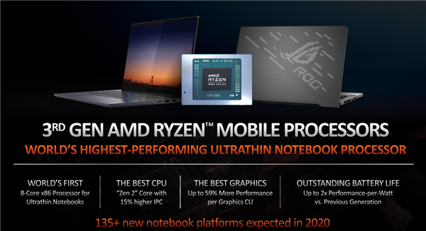 在锐龙4000系列笔记本处理器解禁之后,AMD最近可以说迎来了50多年来高光时刻,因为他们终于在笔记本市场上逆袭了,CPU性能、能效双双超过友商,得到了媒体及自媒体一致认可。 AMD不仅赢得了面子,更重要的是这一次有更多的厂商开始跟AMD合作锐龙4000笔记本了,不像前面的14nm锐龙2000、12nm锐龙3000那样专注低端本,这一次华硕、宏碁等公司在主力笔记本上也使用了锐龙4000处理器。 最近发布的锐龙4000笔记本还是少数,AMD之前在CES发布会上表示今年内将有100多款笔记本使用锐龙4000处理器。 在过去的3个月里,AMD显然又获得了更多的客户,因为在4月份的投资者报告中,AMD提到使用锐龙4000系列处理器的笔记本数量增加到了135+,算下来比之前宣布的数据增加了30%。 全年至少135款笔记本的阵容已经不是小打小闹了,友商耕耘笔记本多年,每年推出的新平台笔记本也差不多就是这个水平的,只能说这次的锐龙4000处理器战斗力确实太强了,性能及续航都有一定优势,再加上AMD的性价比优势,厂商不动心才是问题。 得益于7nm工艺及Zen2架构,锐龙4000的低功耗U系列、高性能H系列都做到了8核16线程,TDP功耗分别是15W、45W级别的。 |