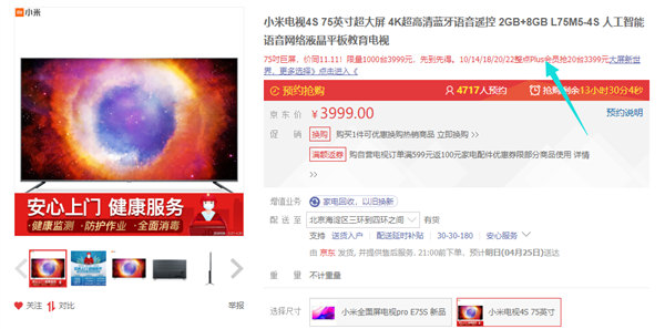 4月24日消息,今天是小米电视超级品类日,32、43、55、70、75五款不同尺寸电视统统降价优惠,到手价599元起,75英寸电视还不到4000元。 其中,小米电视4S 75英寸直降600元,到手价3999元,价同双11,持平历史最低价。而在小米京东自营旗舰店,10/14/18/20/22整点,京东Plus会员更是能以3399元抢20台,真的是历史新低价了。 小米电视4S 75英寸采用极窄边框设计,使用航空级铝材、金属拉丝和银灰金属色。采用4K HDR超高清显示屏,分辨率达到了3840 x 2160,搭载Cortex A53四核处理器,GPU为Mali-450 750MHz,配备2GB内存+8GB存储,支持双频Wi-Fi。 小米电视4S 75英寸搭载2×8W大功率扬声器,搭配杜比音效,让声音更具有立体感,观影更有临场感。 与此同时,小米电视4S 75英寸搭载PatchWall人工智能语音系统,想看什么、想知道什么,按住遥控器语音键说出来。它同时也是家庭的智能小管家,可以语音控制智能设备。 除了小米75英寸电视优惠外,小米电视32英寸仅599元,43英寸仅999元,55英寸仅1749元,70英寸仅2999元,也都达到历史低价,最近准备换电视的小伙伴可以考虑下。 |