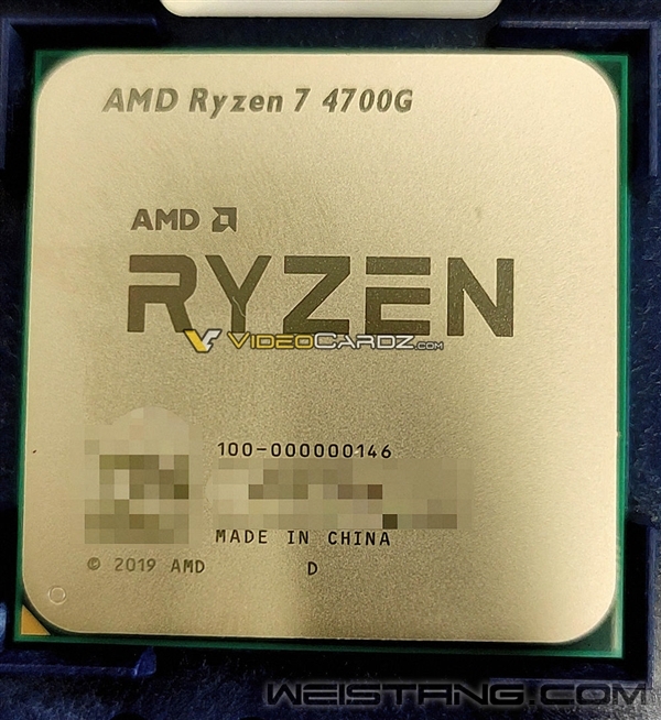 Intel酷睿处理器全线都集成GPU图形核心(只有F系列除外),而且越高端的型号,核显规格越强,AMD APU处理器则与之相反,一直都是仅限低端市场。 现在,APU终于要走入高端了! 作为Renoir家族的最后一块拼图,7nm工艺、Zen2架构的新一代锐龙APU已经频频曝光,甚至出现了“锐龙7 4700G”这样的具体型号,而且确认是八核心,显然是针对高端市场的。 现在,我们第一次看到了锐龙7 4700G的实物照片: