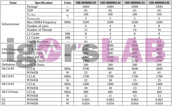 型号、标识、编号、产地、二维码等信息一应俱全,显然是正式零售版本,足以说明距离发布不远了。 至于它的具体规格,从表面上的OPN编号“100-000000146”可以看到,正是昨天泄露的全线产品其中之一,对应规格为8核心16线程,二级缓存4MB,三级缓存8MB,基准频率3.6GHz,最高加速4.45GHz,Vega 8 GPU图形核心,频率2100MHz,热设计功耗65W。 曝料显示,这一代桌面级锐龙APU还有6核心12线程+Vega 7、4核心8线程+Vega 6,热设计功耗都有65W、35W两种。