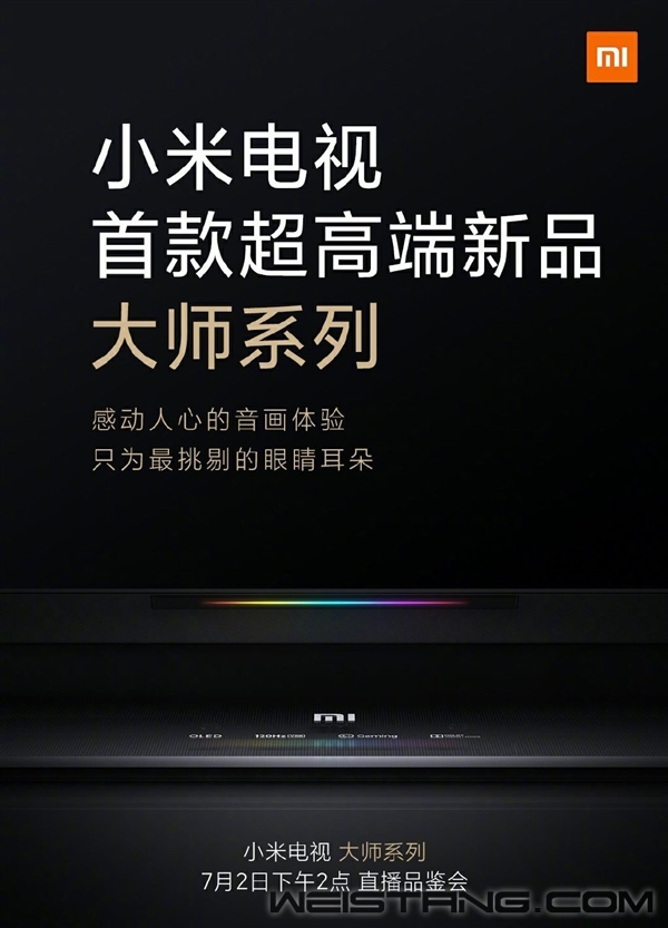 今天上午(6月29日),小米宣布了旗下首款超高端电视新品,命名为大师系列,定于7月2日下午2点发布。 小米称,感动人心的音画体验,只为最挑剔的眼睛耳朵。 海报中还出现了OLED、120Hz、Gaming(游戏)、杜比视界/全景声等关键参数标识,仅从纸面来看,定位着实不低。小米表示,“这一次,不惜成本对标国际高端品牌,使音画体验全面突破。” 另外,海报中还出现了条形RGB呼吸灯等元素,而且给人分体式设计的感觉,究竟实物如何,相信官方会逐步揭晓。 从目前电视产品的主流走向来看,基本延续传统液晶、量子点、OLED再到MicroLED这样从低到高的定位走势,已经有量子点产品且做到中国销量第一的小米,显然需要在更高端层面填补空白。 |