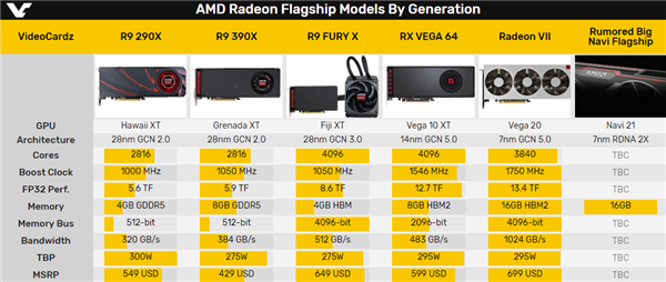 近期关于AMD、NVIDIA各自下一代游戏卡的传闻越来越多,但都是什么说法都有,有的甚至还互相冲突。 AMD这边的新旗舰卡基于RNDA 2架构,核心代号是Big Navi,或者叫Navi 21,或者叫Sienna Cichild(一种鱼类)。 新卡可能会命名为Radeon RX 6900系列,当然也不排除AMD再次改变命名规则,毕竟这几年A卡名字变得实在是太频繁了。 最新曝料称,Big Navi显卡将搭配2048-bit显存位宽(2×8×128),这样的配置显然只能是HBM系列,而且是两颗显存(每一颗位宽1024-bit),容量可能是2×8GB或者2×16GB,当然后者需要最新的HBM2e,三星、SK海力士均已投入量产。 而在另一串代码中,代号Arcturus的下代加速计算卡Radeon Instinct MI100搭配的是4096-bit显存位宽(4×8×128),则对应容量最大可能就是4×16GB,总计达64GB。 那么,AMD要在高端卡上普及HBM显存吗?也未必。 还有网友称,Big Navi游戏卡采用的是16GB GDDR6显存,对应位宽512-bit。 事实上,AMD至今尚未送出已完工的新显卡PCB电路板方案,显然最终规格也并未定夺,各种可能性都有。 考虑到NVIDIA RTX 30系列已经基本锁定9月份发布,目前正在测试阶段,AMD Big Navi几乎肯定要晚一步到来了。 |