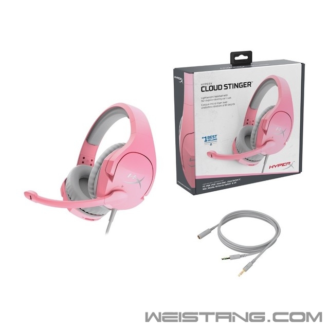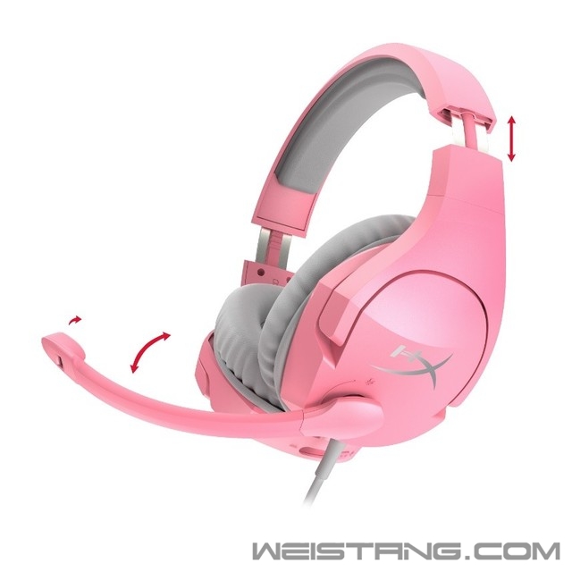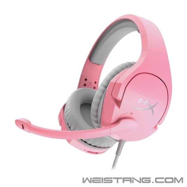 传统的游戏耳机大都为黑色系,此次HyperX推出的新款CloudStinger毒刺游戏耳机(幸运粉)则采用粉色系与灰色系进行搭配。其中,粉色应用在耳罩外壳、头梁和麦克风上,灰色应用在耳罩、头梁缓冲垫和音频线上,色彩的碰撞下让耳机充满了活力。