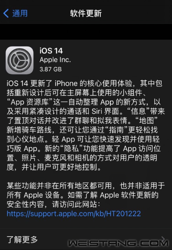 虽然今天没有iPhone 12,但是苹果还是发布了iOS 14正式版,用户也是可以愉快的升起来了。 今天一同发布的还有iPad OS14、Watch OS 14、tv OS 14的正式版,所以有相关设备的用户升级了。 iOS 14带来迄今为止最重大的主屏幕页面更新,全新设计的精美小组件和App Library,通过App Clips探索App Store的新方式,强大的信息App更新,以及更多精彩功能。 据悉,iOS 14中,苹果终于把选择权交给用户,默认浏览器、邮件APP可以选择由苹果之外的第三方程序接管了,即可被设置为默认浏览器的APP必须具备web浏览的基本属性,包括有输入URL地址的文本框、搜索框、书签栏等,可以准确跳转用户指定的链接而不会出现重定向问题等。 iOS 14中的亮点也不少,比如在 "消息" 应用中固定对话、新的隐私功能、模糊位置共享、AirPods/AirPods Pro的自动切换、HomeKit 增强功能:人脸识别、活动区、自适应照明等等。 最后再来说说iOS 14的支持的升级的iPhone: iPhone 11 Pro iPhone 11 Pro Max iPhone XS iPhone XS Max iPhone XR iPhone X iPhone 8 iPhone 8 Plus iPhone 7 iPhone 7 Plus iPhone 6s iPhone 6s Plus iPhone SE(第一代) iPhone SE(第二代) |
