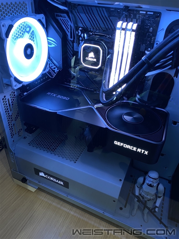 科技媒体The Verge记者Tom Warren晒出了自己刚到的RTX 3090显卡和Xbox Series X主机的尺寸对比。 可以看到Tom Warren的RTX 3090属于公版,个头非常大,高度甚至超过了XSX主机。当然价格和性能也远超XSX主机。 根据此前的报道,RTX 3090海外售价1500美元起,是定价500美元XSX主机的三倍。 不过安装到机箱内部后,看起来3090也没那么大: 注:RTX 3090的规格也是空前强大,8nm工艺安培架构,GA102核心,628平方毫米,280亿个晶体管,10496个流处理器,82个光追单元,328个张量单元,112个ROP光栅单元,核心频率标准1395-1695MHz,搭配美光的384-bit 24GB GDDR6X显存,等效频率19.5GHz,带宽936GB/s,整卡功耗350W。 |