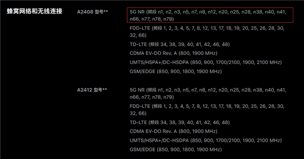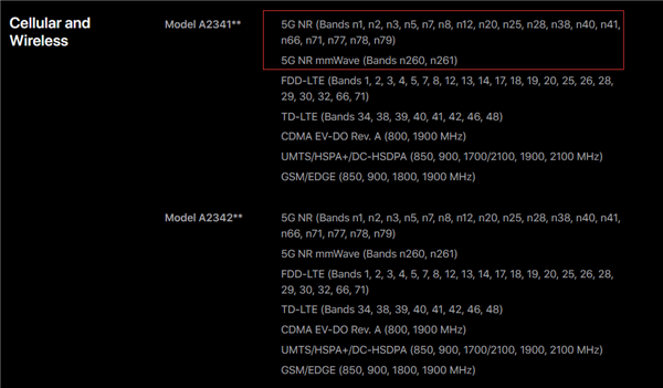 iPhone 12的5G还一个绝技就是毫米波5G,然而不出预料的是这个功能在国内阉割了,国内的两个网络型号中没有5G mmWave频段(n260/n261),后者是美版才有的。 这个问题也跟国内的网络情况有关,毫米波在国内不是发展重点,至少目前不是,2021年开始才会重点发展,现在都没商用。 更主要的是,国内的毫米波频段跟美国的毫米波频段也不一定相同,所以iPhone 12阉割这个功能对国内消费者影响不大,毫米波在国内尚无商用,普及就更遥远了。