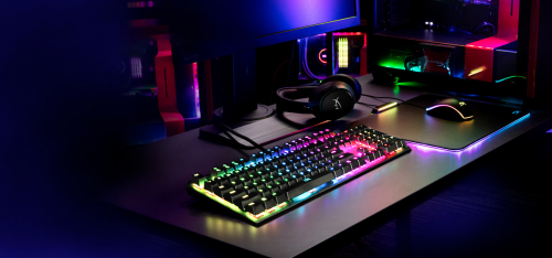 HyperX自主红轴的触发弹力为45g,触发行程为1.8mm,可以为玩家提供游戏所需的快速触发和高速反应,无论是游戏爱好者还是文字工作者,对于HyperX自主红轴的手感都无可挑剔,行云流水,一气呵成,长时间操作也不会有任何不适。并且HyperX自主红轴的按键寿命高达8000万次,几乎是普通键盘按键寿命的2-4倍,HyperX的品质果然名不虚传。 有颜有料 超炫RGB动态光效 机械键盘自灯效已经不是什么新鲜事,但是HyperX起源RGB游戏机械键盘的灯效却不简单。与其他灯效键盘相比,其最大的不同在于——亮!即便在光线充足的地方也可以呈现出炫彩的灯光效果。 因为HyperX起源RGB游戏机械键盘的LED灯被设计在键轴上方,属外露式LED,再加上悬浮式设计的键帽,不仅敲击手感干净利落,响应迅速,更利于光线的发散,所以灯光效果也更璀璨夺目。并且还可以通过HyperX NGENUITY专业定制软件个性化动态光效,游戏模式以及宏编辑等。键盘内置芯片可存储三组个性化设置方案,即便更换PC使用,也可以通过功能键来随时调用预设的个性配置。