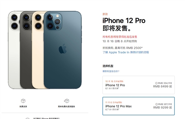 10月16日消息,按照之前苹果公布的细节,今天有两款iPhone 12要正式开启预订,除了苹果官网外、苹果在天猫等电商渠道的官方商店也是同步开始的。 苹果中国公布的细节显示,这次开订的是iPhone 12和iPhone 12 Pro,具体来说如下: iPhone 12和iPhone 12 Pro Max将从10月16日晚8点开始预购,10月23日发售,而两者对应的售价不同,其中iPhone 12的64GB版售价6299元,128GB版售价6799元,256GB版售价7599元。 iPhone 12 Pro 128GB版售价8499元,256GB版售价9299元,512GB版售价11099元。 至于iPhone 12 mini和iPhone 12 Pro Max将会在11月6日晚9点开始预购,正式开卖时间是11月13日。 还要注意的一点是,今年购买iPhone 12(或者说所有iPhone机型)系列,苹果都不会附赠耳机和充电头,如果你没有类似的装备,需要提前选购了。 |