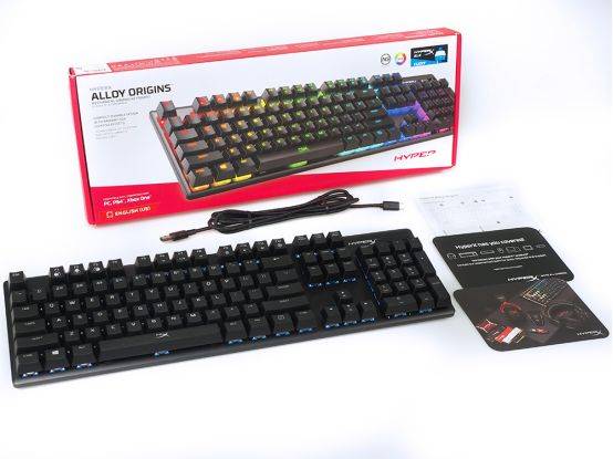 HyperX冰轴的触发弹力50g,触发行程1.8mm,总行程3.8mm,按键寿命可以达到惊人的8000万次。与线性轴不同的是,冰轴这类有声段落轴会在玩家的每一次操作时同步给予反馈,特别是在游戏操作中,有时候键轴并没有按到位,并没有触发应有的操作,而玩家也无从知道自己的敲击是否到位。所以,在敲击的过程中加入一个确认的环节,就可以让玩家随时把控自己的敲击力度与节奏,并第一时间反馈键轴触发是否成功。更重要的是,每一次敲击带来的清脆声可以带来一种快感,这一点对于游戏玩家、文字工作者和程序员来说是深有体会。 精益求精的高品质游戏键盘 相比普通的游戏键盘,起源RGB游戏机械键盘(冰轴版)开箱的一瞬间就让玩家知道什么才是高品质的游戏键盘。 这款键盘采用悬浮式键帽设计,去掉了传统键盘中的一层定位板,上部外壳可兼顾定位板的作用,可以更好的实现一体化的设计;重量方面,一般的键盘重量在300-500g左右,而这款键盘一上手就会发现非常沉,因为其重量竟然达到惊人的1075g,几乎2-3倍一般键盘的重量。尤其需要补充说明的是,其还采用了紧凑型设计,尺寸仅为443x133x37mm(长x宽x高),相比一般键盘更精悍。为什么会这么重,重又有什么好处呢?重是因为其采用了全铝合金外壳,大大增加了其耐用性,也令其品质有了极大提升;加大自身重量的好处在于激烈的游戏操作中,键盘会牢牢锁死桌面,不会轻易滑动而造成误操作。