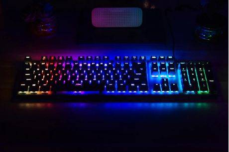 最后要说的是诸多贴心设计。比如数据线采用可插拔设计,方便日常外出携带,并且编织线材质的数据线更耐拉扯且不易损坏;针对游戏玩家,这款键盘在游戏模式下具备100%防按键冲突和全键无冲突功能,确保每一次按键都能成功触发,在关键时刻不会意外退出游戏。 酷炫十足的RGB动态光效 近年来,玩家崇尚个性灯效,所以在键盘灯效上起源RGB游戏机械键盘(冰轴版)也下足了功夫,通电后,灯光效果惊艳无比,因为其采用了外露LED设计,所以可以拥有更好的色彩表现,光效明显高于其他灯光键盘,即便是白天光线充足的环境下也可以熠熠生辉!