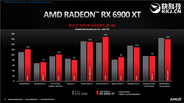 AMD的RX 6000系列显卡已经已经有RX 6800 XT及RX 6800显卡上市,12月份还有RX 6900 XT显卡,这是big Navi家族中的大哥大,性能可掀翻RTX 3090显卡,7999元的价格还便宜了4000元。 对于RX 6900 XT显卡,之前的消息称AMD只会推出公版显卡,不允许厂商推非公版。虽然当时没有给出明确原因,估计是因为货源不多,无法保证显卡厂商的供应。 不过最新消息显示,RX 6900 XT显卡还是有非公版的,AMD允许厂商自行设计基于RX 6900 XT核心的显卡,这也意味着玩家可以买到PCB更强、散热更好的非公显卡。 只是时间进度的话,12月8日公版才会上市,现在这么一折腾,非公版预计也会很快跟进,紧随其后今年上市问题应该不大。 回顾下RX 6900 XT的规格,它拥有完整的80组计算单元、5120个流处理器,核心游戏频率2015MHz、加速频率达2250MHz,同样的128MB Infinity Cache、256-bit 16GB GDDR6,而整卡功耗居然和RX 6800 XT一样都控制在300W。 游戏性能更是达到了和竞品旗舰RTX 3090基本持平的档次,部分游戏还有领先,功耗却低了50W! |