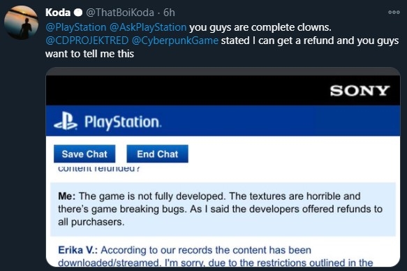 CDPR再发小黄文,表示对上世代主机照顾不周,许诺会在圣诞节后发布一号(一月)及二号(二月)大补丁。玩家不想等补丁也能理解,可向索尼或微软发起退款;如果退款被拒,可直接联系CDPR,他们会尽力解决,安排了一周的时间来处理这件事,截止日期至12月21号,过了这村可没这店了。 多名PS玩家反映退款申请被拒,索尼客服回复称即便CDPR同意退款也不行,玩家应该安心等补丁。 Kotaku的记者费了好大的劲,排了好长的队,总算找到一个真人客服,对方首先表示你已经下载游戏了,与14天退款政策不符;记者以“游戏缺陷”为由申请豁免,对方只说了一句不好意思就闪电般结束对话,留下一脸错愕的记者。 至于实体版那就更难办了。首先因疫情关系,店铺不一定开;就算店铺正常营业顾客要戴口罩冒险前往,被踢了几次皮球后来到客服面前,对方一脸无辜地表示:你想得美。 记者最后按CDPR道歉信给出的电邮地址给开发商写信,目前尚未收到回音。 甚至连马斯克都卷了进来,为这场风波火上浇油: 数毛社总结说,想玩《赛博朋克2077》,目前最佳选择是PC,但是体验与配置挂钩,至少也要中配,我有爽到;XSX其次,相当扎实;XSS与XSX体验类似,就是分辨率低一点;Stadia云游戏或PS5也还凑合。其它平台就不要想了,纯属自虐 |