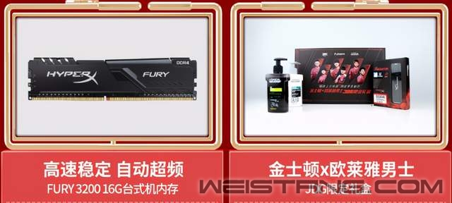 内存产品中,DDR4雷电系列骇客神条性价比极高,尤其是DDR4 3200 16GB内存,无论装机或者升级,都是高性价比之选!此外还有JDG限定礼盒,内含DDR4掠食者RGB系列骇客神条(3200MHz 8GBx2),以及欧莱雅男士橡木碳平衡洁面吸油冻和男士舒润强肤洁面乳,从此游戏告别油腻脸!