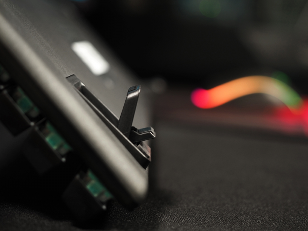 除此之外,这款键盘还有诸多贴心的细节设计值得点赞。比如为玩家提供了三个可调角度,3°、7°、11°,最大程度迎合不同玩家的使用习惯;数据线采用可插拔设计,利于收纳、携带,并且数据线采用编织线材质,耐拉拽,不易损坏。