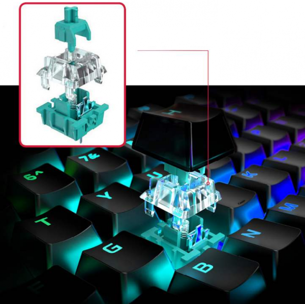 水轴挑大梁 MOBA玩家有福音 起源RGB游戏机械键盘目前有三种HyperX自主键轴可选,按发布时间顺序分别是火轴、水轴和冰轴。火轴属于线性轴,其特点是操作行云流水毫无阻碍;水轴属于无声段落轴,行程中轻微的段落感可以帮助玩家确认按键是否触发;冰轴属于有声段落轴,相比火轴和水轴弹力更大,可以为玩家提供听觉和触觉的双重满足。
