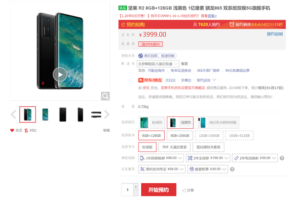 1月16日消息,京东自营坚果旗舰店预告,坚果R2大降价,起售价2999元(8GB+128GB)。 该机目前已经开启预约,1月20日0点正式发售,比首发价便宜1500元(首发价为4499元)。 坚果R2最大的看点之一是全新的TNT 2.0操作系统。 在TNT 2.0版本上,坚果手机团队开发了TNT浏览器2.0,这是一款64位桌面级浏览器,支持浏览器插件,和传统PC几乎一致。 不仅如此,TNT 2.0支持同时打开18个应用,还有活叶窗功能,让你可以在大屏幕上打开更多应用窗口,让更多购物或聊天窗口并存。 此外,针对大屏坚果手机团队研发了“锤子写作”App,支持Markdown语法,支持插入“时间胶囊”,一键将“时间胶囊”内的素材生成文章。 核心配置上,坚果R2采用6.67英寸OLED双曲面屏,搭载高通骁龙865处理器,后置一亿像素四摄(108MP+8MP长焦+13MP超广角+5MP微距),电池为4510mAh,支持55W。 购买链接:京东(4499元) |