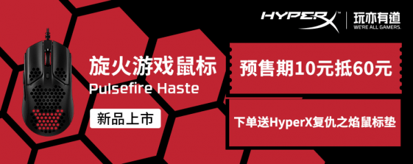 2021新年伊始,HyperX全新推出了Pulsefire Haste旋火游戏鼠标。这款游戏鼠标采用了蜂巢造型的多孔镂空设计,重量仅为59g,手感轻盈舒适,操控灵活自如。HyperX旋火游戏鼠标近期开启超燃预售,期间付定金可获得诸多福利,还不赶快行动起来!