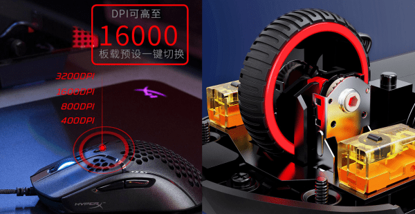 鼠标性能的关键要看传感器,HyperX旋火游戏鼠标搭载原相3335高性能传感器,DPI高达16000,速度高至450IPS,游戏中可实现精准的定位。并且,鼠标可以在400DPI、800DPI、1600DPI、3200DPI之间进行一键切换,满足不同游戏中的操控需求。鼠标采用了高品质的TTC金微动,点击时声音清脆,并且拥有6000万次的超长寿命,触发迅速、反馈清晰,手感干净利落,这对于FPS游戏中的自动步枪单发点射的操作,无疑是巨大的利好。