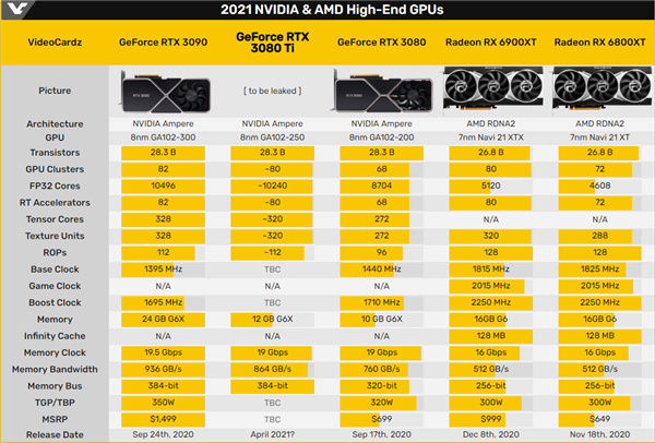 关于RTX 3080 Ti显卡,一直有不少传言。 最近涌现出来的爆料称,RTX 3080 Ti搭载10240个CUDA核心,配12GB GDDR6X显存,计划4月推出。 对比RTX 3090,RTX 3080 Ti小幅缩减了流处理器规模、显存容量减半,目的应该就是为做到七八千元的零售价服务。当然,考虑当前加密货币行情的凶猛,消费者能买到的价格那就另说了。 另外,行业内目前正遭遇比较严重的缺货危机,包括台积电、三星的成熟制程,还有诸多半导体关键元器件等,种种迹象表明,NVIDIA着急推出RTX 3080 Ti并不是一个可能项,反倒是无限期搁置的说法更可信。 |