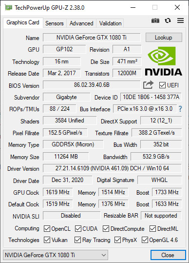 显卡识别必备软件GPU-Z刚刚升级了2.38.0版本,更新条目不多,但都非常实用,除了支持AMD、NVIDIA新卡,还首次加入了对于PCIe Resizable BAR加速技术的检测。 该技术由AMD首次应用落地,名为智能存取(Smart Access),支持RX 6000系列显卡,需搭配锐龙5000/3000或者10/11代酷睿处理器、AMD 500系列或者Intel 500/400系列主板。 NVIDIA RTX 30系列桌面、笔记本显卡也已经加入支持,名字就直接叫做Resizable BAR。 GPU-Z 2.38.0的主面板上,现在就可以看到显卡是否支持、是否开启挂技术。 硬件方面,新版正式支持AMD RX 6700 XT、RX 6700、RX 6600 XT、RX 6600、Lucienne APU(Zen2架构的锐龙5000U/H),NVIDIA RTX 3070 Mobile。 其他方面,新版支持NVIDIA显卡零下温度监测(液氮超频时),并修复了AMD RX 6000系列显卡BIOS保存文件仅512KB再刷入导致显卡变砖的问题。 |