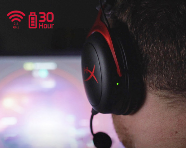 针对耳部的舒适性,HyperX标志性的记忆海绵配合优质的人造皮革,不仅可以充分贴合不同脸部曲线的玩家耳部,并且与皮肤接触的触感更舒适。记忆海绵最大的优势是足够柔软,对于戴眼镜的玩家,不会有压迫感,更不会压出勒痕,但是却可以有效阻隔外界噪音,还原玩家纯净的游戏世界。 无线多功能游戏耳机 飓风无线版游戏耳机采用2.4GHz无线连接技术,最大的特点是稳定可靠、无卡顿无延迟、抗干扰、传输距离远,有效半径可达20米,并且采用USB收发器,即插即用不用配对,并兼容PS4、Switch等。