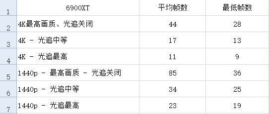 最近《赛博朋克2077》发布了1.2版更新补丁,这次更新让A卡玩家能在游戏中开启光追。 不过目前强烈不建议A卡用户开启光追游玩,因为开了光追之后《赛博朋克2077》的帧数非常低。最近PC Gamer使用了售价1000美元的RX 6900XT测试了《赛博朋克2077》的光追表现,只能说有点惨不忍睹。 可以明显看到,无论是6900XT还是6700XT,在开启光追后,帧数下降非常厉害。尤其是6900XT,在光追开启后,4K和2K分辨率下,帧数非常低,基本上处于不能玩的状态。 众所周知,N卡用户开启光追后可以通过开启DLSS来提升一些帧数,但AMD的FidelityFX Super Resolution功能还没有推出,所以RX 6000系列显卡在运行光追时仍然有很大的压力。 《赛博朋克2077》6900XT光追测试成绩如下: 《赛博朋克2077》6700XT光追测试成绩如下: |