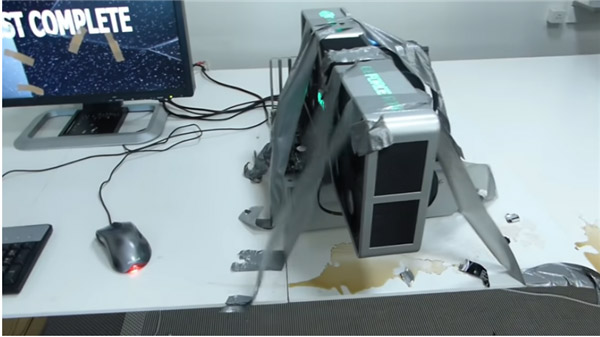 愚人节刚过,老外也欢乐地盘点了一番。硬件圈的最佳,被TheVerge颁给了RTX 4090显卡。 “RTX 4090”的创意出自丹麦硬件爱好者Kasper Andersen,他此前就以打造复古显卡闻名,这次恶搞出了一张12把风扇(正8+背4)的RTX 4090显卡,集成48GB显存。 由于功耗高达1000瓦,作者直接给了两个品字三孔电源接口。 视频 上机点亮后,同样有RGB灯效,为了凸显12架风扇暴力散热性能,作者安排一听百事可乐直接被吹洒,甚至还把显示器撞碎,最后只好用胶带固定。 作者还设计了一个CG跑分程序,帧数高达23000,号称是RTX 3090的两倍性能。 最后的彩蛋是RTX 4090 Ti,内部8张GPU互联,启动后直接一缕青烟,实在忍俊不禁…… |
