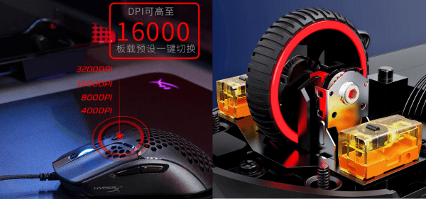 其四,可编程按键和RGB灯效,即便是轻量化的鼠标依然提供高规格的可玩性。通过HyperX专业软件NGENUITY可自定义6个编程按键,DPI参数、RGB灯效等,并将设置参数保存在鼠标板载芯片中,脱离设置主机依然可以正常使用。