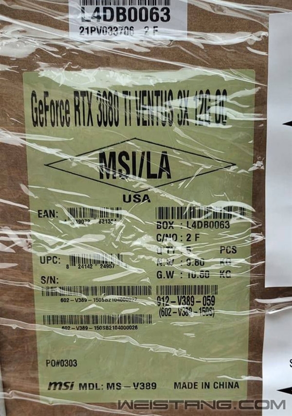 关于RTX 3080 Ti的传言已久,日前我们再次获知其动态。 据报道,有媒体在香港拍摄到一批准备运往美国洛杉矶的RTX 3080 Ti显卡,来自微星Ventus 3X OC型号。 货箱显示,这款显卡配备了12GB GDDR6X显存。 更进一步的爆料称,RTX 3080 Ti定价999美元,也就是和RX 6900 XT海外定价一致(国行7999元),5月发售上市。 当然,赶在虚拟货币大热的节点上,RTX 3080 Ti同样会采取挖矿预限制措施,甚至从底层核心下手,以避免很简单地通过修改BIOS、驱动等破解。 至于其它规格,RTX 3080 Ti预计集成9984或10240颗CUDA核心。 有趣的是,同一批货运照片中,还出现了RTX 3090、GT 710、RX 580等身影。 |