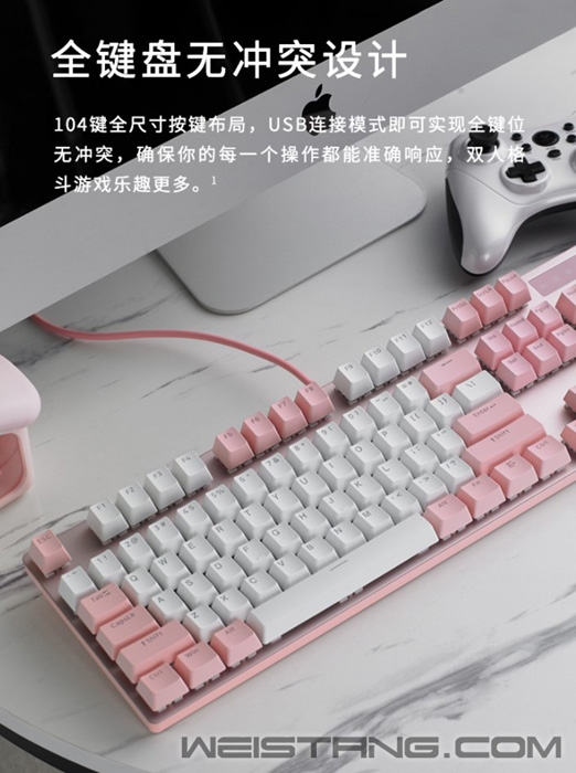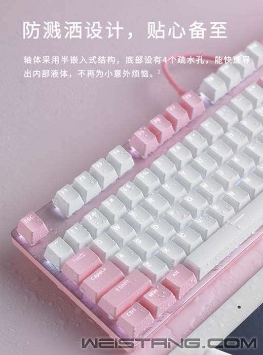 近日,老牌实力大厂,国产外设领军品牌——雷柏Rapoo,推出了V500PRO草莓牛奶背光游戏机械键盘,作为雷柏最热门V500系列新员,如樱花般粉嫩清新的颜色,一定令你一眼难忘。在性能方面,V500PRO草莓牛奶也十分突出,采用雷柏自主黑青茶红游戏轴体,5种背光模式,12个多媒体快捷键,104键全键无冲,PBT透光键帽,悬浮式键帽排列,防溅洒设计,大面积防滑脚垫,无疑是今年机械键盘市场上最惹人注目的产品之一! 粉色和白色,是樱花的颜色,亦是浪漫、爱情、新生的象征,怀着初心的少女,值得拥有一份漫天飞舞的浪漫。 键盘采用纯白背光系统,自带5种背光灯效,带来难以比拟的视觉新体验,一见倾心。 雷柏自主机械轴,经过几代产品更新,已成为高质量国产轴的代表,黑、青、茶、红四款经典轴体的特色已无需多言,任君所好;6000万次寿命,确保手感持久不变。 PBT材质透光键帽,字符清晰耐磨,减少打油,手感爽脆,带你体验最原汁原味的机械轴手感。 Win系统中,通过Fn+F1~F12,可快速切换浏览器、邮件、播放器等操作,办公娱乐两不误。 键盘采用悬浮式键帽排列,铝合金材质上盖…越是简单的设计,约考验设计的功力和制造实力。键盘内置加固金属板,大幅提升机身稳定性,在激烈的游戏中文若泰山,保护键盘轴体和线路板。 104键全键无冲突设计,享受六指琴魔般的畅快游戏。 防溅洒设计,呵护键盘安全; Windows键锁定功能,玩家至上。 轴体采用半嵌入式结构,底部设有4个疏水孔,能快速导出内部液体,不再为小意外烦恼。 雷柏V500PRO草莓牛奶背光游戏机械键盘现已正式上市,诚意价仅199元,每处看似不经意的细节打磨,都体验了雷柏专业的机械键盘制造功底,和对玩家无微不至的关怀,可谓2021机械键盘市场的诚意标杆之作,感兴趣的朋友千万不要错过。 |