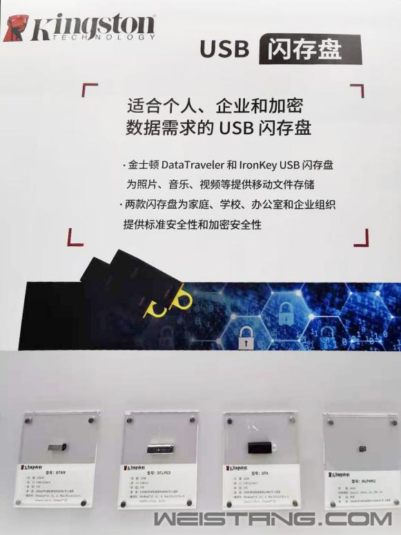 金士顿DataTraveler和IronKey USB闪存盘为照片、音乐、视频等提供移动文件存储功能。两款闪存盘为家庭、学校、办公室和企业组织提供标准安全性和加密安全性,部分产品还经过 FIPS 140-2 Level 3 认证,采用XTS模式下的256位AES 硬件加密,备受推崇的特性构建先进水平的安全性。