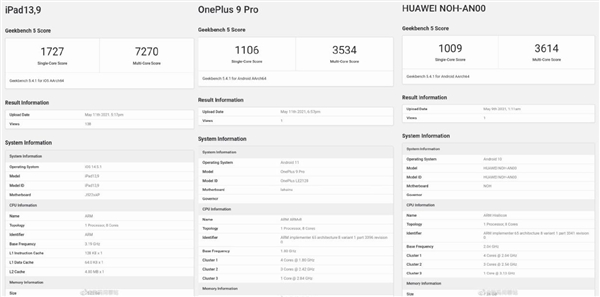 前不久,苹果在春季新品发布会上推出了全新的iPad Pro系列,该设备不仅搭载了全新技术的屏幕,还搭载了此前在PC端应用的苹果自研M1芯片,带来了前所未有的性能加持。 今天上午,知名爆料博主@数码闲聊站公布了新iPad Pro的跑分数据,其中显示该设备在Geekbench 5中拿到了单核1727、多核7270的成绩,整体性能完全处于平板电脑产品线的金字塔顶尖,完全碾压了安卓阵营的平板。 网曝新iPad Pro跑分 碾压安卓阵营 同时,该博主还放出了麒麟9000和骁龙888的跑分作为对比,其中可以看出这两者的跑分分别为单核1009多核3614、单核1106多核3534的成绩,而新iPad Pro在16GB内存+M1芯片的组合下,几乎达到了他们的两倍性能。 不过,如此强大的性能也令其售价达到了顶级水平,最低配的“乞丐版”也超过了6000元的价格,而想要完整体验到mini LED屏与M1组合的强大,更是至少要花费近9000元购买12.9英寸的版本。 但需要注意的是,虽然该设备带来了令人惊讶的售价,但是依然销售火爆,根据苹果官网显示,新iPad Pro 12.9寸的一些配置最晚发货时间甚至要排到7月份了。 这也令分析师对新iPad Pro的市场表现十分看好,甚至有研究报告显示,高端版本的12.9寸新iPad Pro在年内的出货量可能会达到500万台。 |
