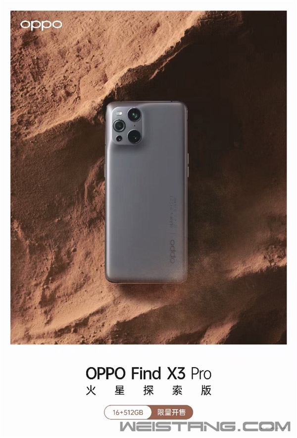 今年3月,OPPO十年理想之作——OPPO Find X3系列正式发布。 发布会上,OPPO表示,Find系列是OPPO定位高端旗舰的系列:“十年来,Find从来没有放弃过信仰,每一代都在探索科技与艺术的平衡与融合,希望开启高端旗舰的新可能。” 近日,OPPO Find X3 Pro火星探索版海报曝光,海报显示该机为16GB+512GB顶配版,并将以限量的方式进行售卖。 有爆料称,预计该版本定价依然为6999元左右。 本次,OPPO Find X3系列搭载了6.7英寸屏幕,拥有QHD+分辨率和525 PPI,支持原生真10bit显示,采用全新LTPO混合背板技术,可实现1Hz-120Hz范围内无感调节120档刷新率。 另外,Find X3全系采用5000万像素1/1.56寸双主摄,搭配两个与索尼联合开发IMX766传感器,并配备60倍显微镜头与1300万长焦镜头。 凭借如此强悍的影像性能,使得该机成为行业首款真正意义上的双主摄旗舰。 作为超大杯的OPPO Find X3 Pro,其搭载了新一代旗舰处理器骁龙888,拥有VC液冷散热设计,内置4500mAh容量电池,支持65W超级闪充、30W无线闪充以及10W无线反充。 ID设计上,OPPO Find X3系列背部采用连续曲面设计,一体化流线曲面机身,在镜头处使用了一体化“环形山”设计,镜头模组与整个后盖一体成型没有任何断点。 除此以外,OPPO Find X3系列首发了全链路10 bit色彩引擎,在拍摄、编码、存储、解码、显示几个环节全面支持真10bit图片和视频。 |