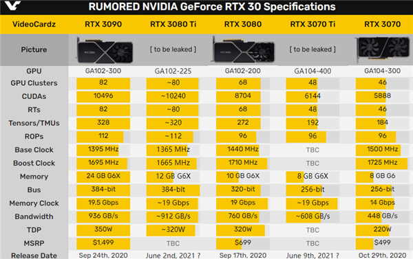 似乎还从来没有一款显卡像RTX 3080 Ti这样一波三折,从年初一直跳票到年中,目前定于5月31日发布,6月2日解禁,6月3日开卖。 看起来,AIC厂商们也憋不住了,某家就在产品列表中已经加入了RTX 3080 Ti,只是之下暂无任何产品。 很快,这一分类又被删除,反而进一步实锤。 事实上,该品牌早早就泄露了RTX 3080 Ti的包装盒、产品造型。 RTX 3080 Ti将采用GA102-225 GPU核心,10240个流处理器,搭配384-bit 12GB GDDR6X显存。 RTX 3070 Ti也会同时发布,晚一周解禁上市,GA104-400 GPU核心,6144个流处理器,256-bit 8GB GDDR6X显存。 二者都会默认限制挖矿,算力只有一半。 |