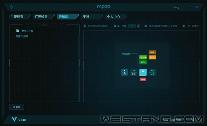 九尾妖狐凭借着魅惑的外形,苗条的身材,深受各位玩家的喜爱。九尾妖狐作为一个法师型的刺客,飘逸灵活、高技能的伤害,有控制是其最大的特点,她可以不断在团队边缘游走并且凭借自己短CD的技能持续输出伤害,瞬间爆发力也相当足。今天笔者将使用雷柏VT30电竞游戏鼠标强大的宏定义功能,分享一个更加飘逸的狐狸。 首先我们先看看九尾妖狐推荐的符文天赋加点: 主符文巫术系: 基石天赋:奥术彗星 提高阿狸的消耗能力,尤其是在3级后配合魅惑触发的奥数彗星和Q、W技能的伤害。 高级符文:终极技能帽 阿狸的大招往往可以一套带走敌人,如果R技能没好则往往伤害不足,点出终极技能帽可以让阿狸的单杀能力变得更强,更容易滚雪球。 基础符文:超然 阿狸的减CD装备很多,溢出的属性变成法强可以让她既满足了40%的满减CD,又能提高自身技能伤害溢出减CD不浪费。 基础符文:风暴聚集 提高阿狸的平A伤害以及法术强度。 副符文主宰系: 基础符文:眼球收集器 阿狸的单杀能力很强,点出眼球收集器可以快速享受到其属性的加成。 基础符文:无情猎手 点出无情猎手增加的额外移动速度可以让阿狸的跑图能力更强,支援队友能力更强。 玩法:熟悉了九尾妖狐的天赋和符文之后,我们再来看看他的玩法以及连招。 1.可以利用Q的加速效果,来回走位使得第二段真实伤害的Q命中别人,如果掌握熟练,你不妨用极限距离的Q这样对方只要被命中就只能吃两段伤害; 2.Q人的时候可以接平A,然后向后退; 3.出其不意REQW点燃一套带走; 4.前期阿狸十分缺蓝不要脸滚键盘放技能,最好只用Q消耗对方; 5.连招的最大伤害:点燃+RWAAERAQR 熟悉九尾妖狐的基本玩法之后,下面就为大家讲解如何通过雷柏VT30一键玩转阿狸。相信许多的玩家有时候会因为手速不够快而没法完成复杂的连招,例如EQ等,我们可以通过宏定义的设置,将完美解决您的手速问题,让你一键就能发出阿狸的连招,让你在游戏中快人一步,离胜利更进一步。 步骤一:我们以"EQ"为例,设置一个宏命令,在弹出的页面中“新建宏”,并将"新建宏"重命名为"阿狸EQ连招"。 步骤二:阿狸基本连招--"EQ",这一系列动作命令设置为一个宏命令。点击界面右侧的"开始录制",点击"停止录制"。即完成了一组宏命令设置。 步骤三:设置好阿狸EQ连招之后,回到主要设置界面,以前进键为例,点击VT30鼠标页面的前进按钮,选择刚才设置好的"阿狸EQ连招"命令,点击"确定"后,即可使用。 步骤四:设置完成后,就可以开启你的"狐狸"之旅,一键发出EQ连招让你在游戏里用刺客的持续高伤害将敌人打的土崩瓦解。 领军国产外设品牌,实力大厂上市企业——Rapoo雷柏发布的VT30幻彩RGB游戏鼠标,拥有1680万色三区域RGB灯光系统,搭载P3327的专业传感器,可在200-6200DPI中以100DPI为单位逐级微调,3000万次的清脆手感微动开关,性能和手感得到极大提升;9个可编程按键,狙击专属火力按键。板载内存、编织线材、镀金USB接口、特氟龙材质脚垫,优秀的工业设计与表面材质保证了长时间游戏的舒适度。仅售149元,相信它一定会成为你首选的游戏利器,给你畅快的游戏操作体验。 |