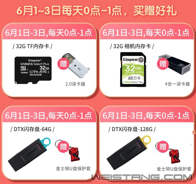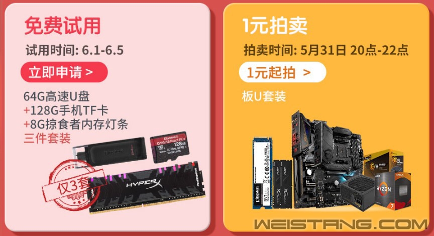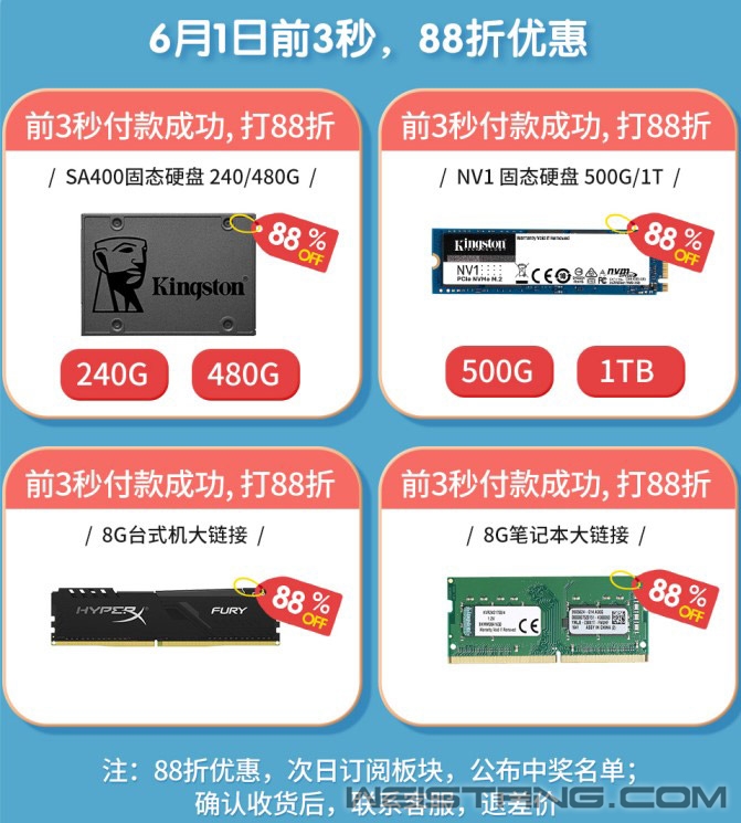 6月1-3日,金士顿天猫618开门红活动将正式开启,区别于往年,今年活动声势浩大,不仅有六大主题福利活动,每天还有限时秒杀特惠产品,并且全线产品均有不同程度的让利,还不赶紧来看看有没有自己心仪的装备?(活动链接kingston.tmall.com) 福利一:转盘抽奖 活动期间下单并付款的消费者可获得5次抽奖机会,每日签到还可额外获得1次抽奖机会,特等奖大疆无人机,抽奖结果在转盘页面现场出,次日店铺同步更新中奖名单,消费者可咨询客服领奖。 福利二:直播间惊喜秒杀 金士顿最新上市的NV1固态硬盘将在6月1日凌晨1点的直播间进行惊喜秒杀,至于多少钱,来直播间不就知道了?此外,1点10分直播间还将针对0-1点的订单进行摇号抽50元、100元红包活动,直播间主播现场投屏,幸运儿即刻揭晓。截止6月3日,直播间还将不定时抽各种精美礼品。 福利三:0元入会 积分兑礼 活动期间,所有金士顿的爱好者均可0元入会,新入会会员还将获赠优惠券,周三会员日还可抽满减优惠券。积分还可在活动期间兑换精美礼品,包括牛年玩偶挂件+金士顿人头U盘套、鼠年生肖盘,甚至HyperX掠食者DDR4 3000 16GB内存条等等。 福利四:免费试用及1元拍卖 6月1-5日期间,申请免费试用资格,有机会获得金士顿大礼包(DT70/64GB闪存盘+MLPMR2/128GB存储卡+掠食者RGB DDR4 8GB内存条)。5月31日20-22点期间,还有1元起拍硬件板U套装,(骇客神条+NV1固态硬盘+R7 5800X处理器+B550M主板+电源)。 福利五:购物金多买多得 购买金士顿产品前可先充值购物金,充值300元得310元,充值400元得420元,充值800元得850元,充值1500元得1600元,充值2500元得2700元,充的多得的更多,切记下单前先充购物金,全场通用哟! 福利六:限时秒杀 有买有赠 金士顿真秒杀活动,6月1日前三秒,指定产品付款成功享88折特惠,包括金士顿A400固态硬盘(240GB/480GB),金士顿NV1固态硬盘(500GB/1TB),骇客神条台式机内存和笔记本内存均参加真秒杀活动。次日店铺公布秒杀中奖名单,消费者可在收货后联系客服退差价。 相比秒杀的紧张刺激,有买有赠活动就从容许多,6月1-3日,每天0-1点,购买指定型号的存储卡或闪存盘将获赠2.0读卡器、4合一读卡器以及金士顿U盘保护套。 总结一下,最全的活动流程应该是5月31日20:00去参加1元拍卖活动,争取能拍到这套超值的AMD板U套餐;6月1日0点准时参加秒杀活动,这需要提前锁定要购买的产品,0点准时付款,如此一来3秒内有望88折买到心仪产品;然后0元入会;再充值购物金;1点以前参加买赠活动;1点准时来到直播间参加金士顿NV1的惊喜秒杀活动,活动结束后别急着离开,1:10直播间还要抽红包呢。待一切结束后,先去申请免费试用资格,再去大转盘签到最后试试手气,也许大疆无人机就是你的了。 最后,关灯睡觉,静待快递小哥敲门送上618开门红的心仪产品。 金士顿天猫618开门红活动链接:https://kingston.tmall.com/ |