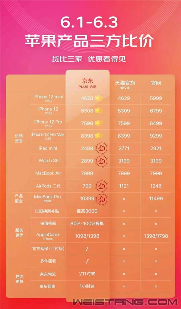苹果京东自营店今日开启大促,iPhone 12全系列好价,最高比官网便宜1491元。 这次优惠有多种优惠券,其中iPhone 12 64G/128G/256G有1000元大额券叠加400元Plus会员券,最高优惠1400元。 具体来说,iPhone12 128G在京东自营上现售6708元,本身已经比官网已便宜91元,同时领1000元大额券+400元PLUS券之后,实付5308元。 这个价格在官方自营中是最低的,拼多多上第三方是5299元,天猫上优惠后也要5309元,京东便宜1块钱,这是有备而来。 另外,IPhone 12 Pro 256GB版现价9198元,叠加400元大额券、400元Plus会员专享券之后,到手只要8398元,也比天猫便宜1元。 IPhone 12 Pro Max 256G版现价9998元,叠加400元大额券、400元Plus会员专享券之后,到手只要9198元,继续比天猫便宜1元。 除了价格大降之后,还会有以旧换新补贴、官方延保直降,前者最高补贴500元,后者可以优惠300/400元。 |