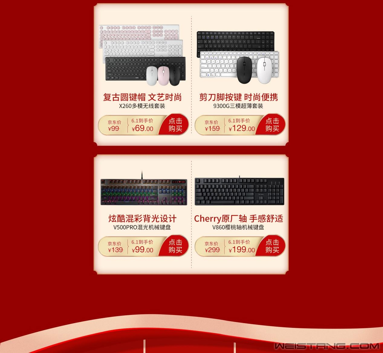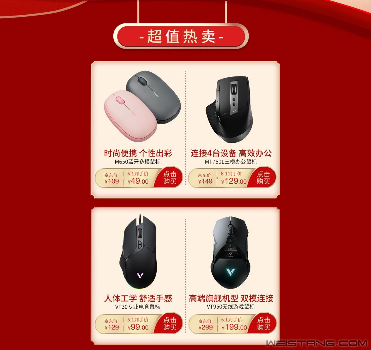 搓搓手,万众期待的618又要来啦!领军国产外设品牌,实力大厂上市企业雷柏提前在开门红携带众多爆款铺天盖地席卷而来。6月1日准时在雷柏京东旗舰店开启全场每满999减200元;299减40元;199减30元;99减15元等超值促销开门红。还有多款超值国货,低至5折,小伙伴们买点什么才不亏,赶紧看过来。 作为年轻群体里备受欢迎的爆款产品,M650蓝牙多模鼠标低至5折!到手价只要49元!鼠标支持无线2.4G、蓝牙连接,可以连接3台设备快速切换。按键采用的是办公刚需静音按键,适合需要安静办公的公共场所。它整体圆润的造型,加上包围鼠标的一整圈硅胶圈,M650在手感上很软碳,很柔软亲肤,粉嫩高颜值配色让它在女生面前亲而易举俘获芳心。 对于频繁出差又精致的搬砖人来说,雷柏9300G是非常不错的选择。里面包含一个仅5.6mm键盘和一只具备静音微动的鼠标。轻薄对的特点对出差人士相当友好。套装支持蓝牙3.0、蓝牙4.0、无线2.4G等三种连接模式,因此键盘最多可同时连接4台设备,鼠标可连接三台设备,轻松实现多设备快速切换,让用户轻松应对繁琐工作。 游戏玩家特别关注的无线电竞黑科技,VT950无线游戏鼠标也有5折优惠。搭载原相PMW3389编码器、欧姆龙5000万次微动和雷柏自主游戏芯片,一块客制化OLED屏幕更是增添了鼠标的可玩性。这次开门红到手仅需199元,玩家们冲鸭。 熟悉雷柏的玩家们都了解雷柏V500PRO,一款定位入门级的机械键盘,在今年不仅推出87键无线版,还有常规多模版,以及多款个性拼色定制版,用户可根据喜爱,实际使用需求选择。在618开门红期间,雷柏V500PRO多模无线版机械键盘,4000mAh的高能锂电,支持5台设备连接切换,新品上市到手价199元。雷柏V500PRO-87键无线版的到手价仅为129元,常规104键无线版仅为134元,非常超值。 垂延已久的V600S无线振动游戏手柄也超划算了,都可以不需用到私房钱,119元就可到手。搭载2.4G无线技术,10米传输距离;可跨多平台适用,例如PC、PS3、安卓4.0以上设备等。 为了引爆属于粉丝们的快乐星球,满足新用户的垂涎三尺,雷柏即将开启元气618开门红活动,有需要的用户赶紧下手,我们在京东等你大驾光临。 |