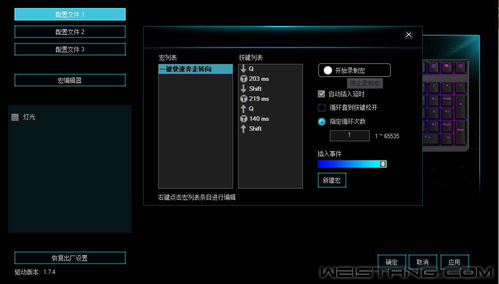 《生化危机8:村庄》是卡普空旗下经典僵尸题材的动作游戏《生化危机》系列的正统续作。而快速转向作为游戏中必不可少的技能,快速的奔走转向可以躲避敌人的追袭,在游戏中来回穿梭,给予敌人致命的伤害。今天笔者就使用雷柏V700RGB合金版背光游戏机械键盘强大的宏定义玩出一键快速奔走转向的高速闪现。 宏怎么设置去完成快速奔走转向的动作,需要将默认的Q或者X键(快速转向)+Shift键(奔跑)同时按下,这样就能触发快速奔走转向的动作。宏定义可以让你高速闪现,在游戏中来回穿梭,给予敌人致命的伤害。下面就为大家讲解如何通过雷柏V700RGB合金版的宏定义一键玩转快速奔走转向。 步骤一:打开驱动,选中雷柏V700RGB合金版的宏编辑,点击“宏编辑器”,再点击右下角的“新建宏”,命名为“一键快速奔走转向”。 步骤二:将“一键快速奔走转向”的一系列操作进行录制,点击界面开始录制宏,并依次输入Q和Shift,点击“停止录制”,即完成了一组宏命令设置。 步骤三:设置好一键快速奔走转向的一系列动作之后,回到主页面,以T键为例,在设置页面,点击宏,选择刚才设置好的“一键快速奔走转向”命令,点击“确定”后,点击“应用”,即可使用。 步骤四:设置完成后,就可以开启你的快速奔走闪现之旅,只要经过合理的设置,雷柏V700RGB合金版让你在游戏中行云流水般的奔走可以躲避敌人的追袭,给予敌人致命的侵袭。 RAPOO雷柏,领军国产外设品牌,实力大厂上市企业发布的V700RGB合金版幻彩背光游戏机械键盘,1680万色的幻彩RGB背光系统,19种的灯光模式,并支持单键背光可独立设置。金属的铝合金上盖,全键无冲突,全键可编程等诸多亮点集一身的雷柏V700RGB合金版,强大的驱动软件也让键盘的可玩性获得更大的提高,售价仅为299元,相信它一定会成为你首选的游戏利器,给你畅快的游戏操作体验。 雷柏游戏电竞V-进击MVP Rapoo雷柏,成立于2002年,外设行业上市公司,国家级高新技术企业,首批国家智能制造试点示范企业。2008年推出首款游戏产品,调研、创意、打磨,基于用户需求的分析,以普及之名,彻底颠覆玩家对游戏外设的认知,席卷并推动整个行业的变革与发展。 13年时间,涵盖游戏鼠标、游戏键盘、游戏耳机、游戏手柄、游戏麦克风等多个品类产品,以技术研发为核心,以市场需求为指引,凭借雄厚的研发实力,自主研发定制雷柏轴体、雷柏微动、游戏芯片等核心产品部件,加入专业无线游戏方案、Qi无线充电、OLED显示屏、IP68级防水防尘、板载内存、云端存储等具有出色电竞表现的个性化功能,以细致入微的关怀解决玩家需求的痛点。 传承英雄荣耀,注入必胜决心。雷柏游戏全面携手电竞各领域,先后与电竞战队(皇族、GT、OMG、AS仙阁、GK、eStarPro)、电竞明星(Miss韩懿莹、Misaya若风禹景曦)、电竞赛事(NEST、IET)、电竞教育(FFF培训基地)都展开过深度合作,共同推动电竞文化发展。此外,雷柏游戏与职业选手深度探讨更为出色的操控反馈,联手推出过Uzi定制版、Zhou定制版、Miss定制版、OMG战队定制版等多款专属外设产品,用中国“智”造,用更强的装备,追逐坚持的,探索热爱的。 2021年,模块化、个性化、专业化、性能化、游戏类别针对化,以无线与轻量化为名,拓展游戏场景应用,重梳游戏行业外设产品痛点与需求,全面打造个性化的游戏体验,助力玩家从游戏竞技到生活日常,让积极、乐观的游戏精神在场下延续。 |