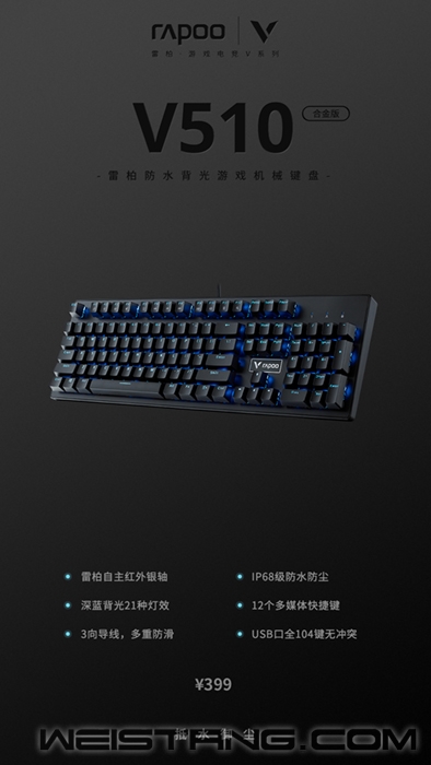 有人夏天在水里打麻将,是否有人想尝试在水里玩电脑呢?近期国内外设大厂雷柏Rapoo推出了V510合金版游戏机械键盘。全身采用深蓝色背光系统视觉效果十分帅气,上盖采用高强度金属面板,搭配雷柏自主红外银轴,电竞配置满满,再加上全104键无冲突,以及IP68级防水防尘,为今年夏天游戏上分添加了一名大将! V510合金版使用雷柏自主红外银轴,采用红外光阻断的方式导通,快速响应,稳定可靠,寿命可达到5000万次;创新弹片发声/手感控制部件,类青轴Click段落感十足,手感非常好,反馈感十足!采用双色注塑键帽,不仅字母能够透光,还十分耐磨,使用起来不怕有字符褪色、磨损、模糊的困扰,搭配雷柏自主红外银轴,指尖敲击键盘的每一下都打击感饱满,打起游戏来十分带感。 作为高性能机械键盘,键盘外部拼接处无缝连接,内部PCB板采用疏水纳米涂层保护,使得V510合金板的防水防尘级别达到了IP68级。即使在工作/游戏时将液体打翻,也能够快速排出,确保元器件正常工作,不愧是大厂出品,设计贴心到位。 V510合金版采用了冷峻的深蓝背光,让人感觉科技感十足,不禁让人联想到“深海机甲”。21种预设光效,支持全键光效自定义,超多玩法,乐趣无穷。不仅如此,V510合金版上盖采用了加厚金属面板,结实耐用,提升键盘稳固,触摸起来给人一种沉稳冰冷的感觉,仿佛是机甲冰冷的外壳。 为了使游戏时体验更加愉快,雷柏的设计师也非常贴心的采用了104键无冲突设计以及3向导线的加入,每一个操作都能够准确响应,拥有更灵活的走线,令桌面更加整洁,不会让玩家在游戏中出现按键冲突的意外以及凌乱的桌面导致的不佳游戏体验。再搭配Windows 12个多媒体的按键功能,一键切换,使你办公/游戏事半功倍。 作为合金版的V510,手感与外观是没的说的,质感十足。特别是对小编这种喜欢金属感的人来说,第一眼看到简直爱不释手,非常有吸引力。针对游戏部分,有雷柏红外自主银轴的加持,不论是声音还是回弹,都让人十分舒服,不愧是雷柏大厂精心研发的轴承,非常给力!针对复杂的使用环境,这款V510合金版采用了IP68级防水防尘设计,不得不说这个特点让人眼前一亮! 方便用户面对各种意外,如果不小心把水或饮料打洒了,大家都不用害怕键盘会因此受到损坏~ 这么给力的键盘,大家要不要考虑入手呢? |