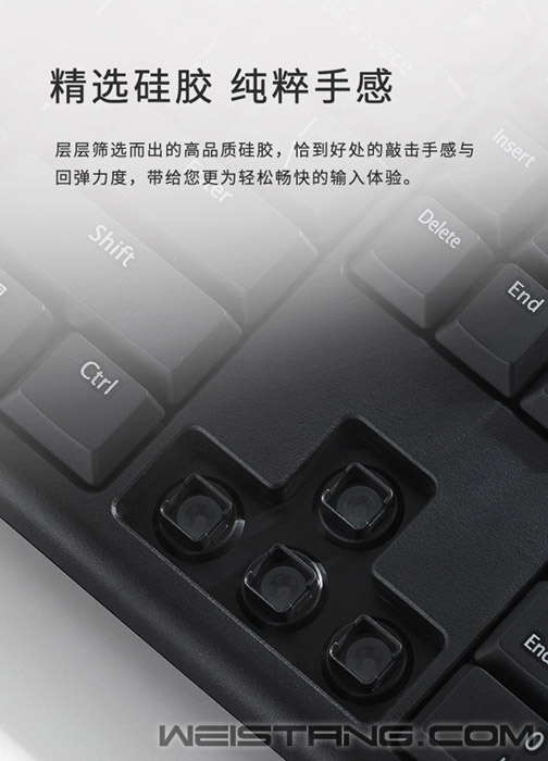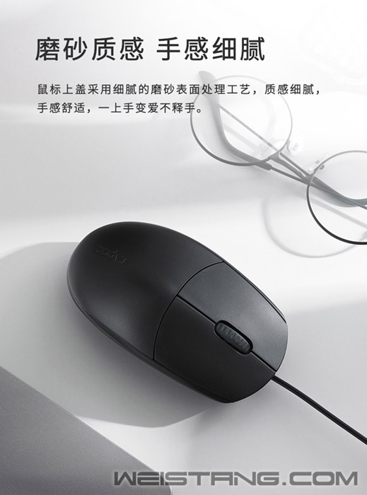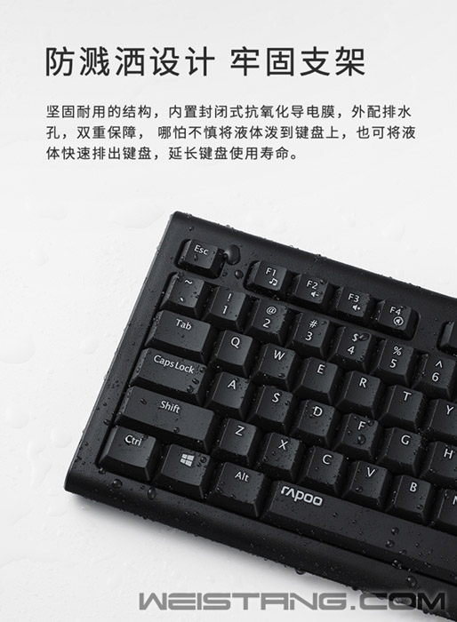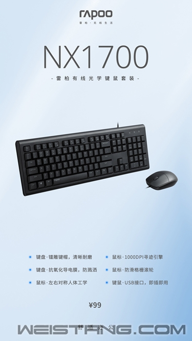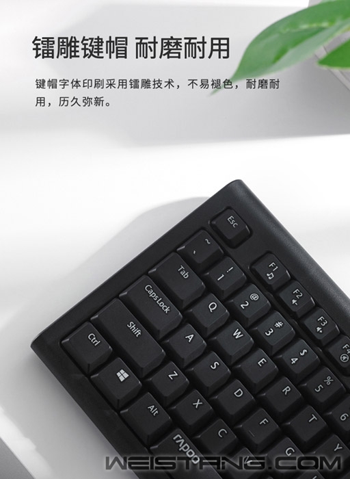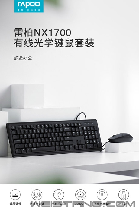 近日,领军国产外设品牌,实力大厂上市企业Rapoo雷柏推出了一款办公环境专用的键鼠套装—NX1700有线光学键鼠套装。键盘有着镭雕键帽、防溅洒设计、12个多媒体快捷键,鼠标有着人体工程学左右手设计,磨砂质感,质感细腻。套装整体采用现代简约设计,搭配优雅的办公环境,那它到底有什么样的魅力呢,我们一起来了解下。 键盘采用全尺寸键位布局,确保手指可以充分与键帽接触。键帽采用镭雕印刷技术,耐磨耐用且不易褪色,长时间使用后字符依然清晰可见。 键盘选用层层筛选的高品质硅胶,恰到好处的敲击手感与回弹力度,带给您更为轻松愉快的输入体验。 如果不小心将水溅洒到键盘上也不必担心,NX2100的键盘内置防水导电膜,外配排水孔,双重的保障,可将液体迅速顺畅排出键盘,避免内部短路影响工作。牢固的折叠支架,符合人体工学,使用更加自如。 键盘自带12个多媒体快捷键,在Windows系统中,可通过Fn+F1~F12多媒体快捷键,快速切换互联网、邮件等多媒体功能,高效办公、畅快娱乐。 NX1700搭配的鼠标也非常用心,采用左右对称的人体工程学设计,符合人体工学,圆润的整体弧线,带来饱满的握感,操作更显自如。上盖采用细腻的磨砂表面处理工艺,质感细腻,手感舒适,一上手遍爱不释手。 鼠标采用1000DPI寻迹引擎,反应灵敏,操作顺畅,保证随时随地正确追踪。 鼠标滚轮采用橡胶材质,格栅造型提升摩擦力,滑动顺畅无阻,无论工作学习,皆能轻松应对。 |