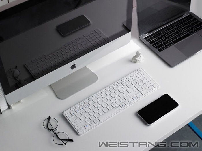 轻薄,简约,现代设计,打造出了现代审美产品,今日国产外设品牌雷柏Rapoo,推出了E9350G多模无线刀锋键盘。采用蓝牙5.0/3.0/无线2.4G三种智能连接模式,传输稳定可靠,适配设备广泛,能同时连接4台设备,剪刀脚结构设计搭配巧克力独立键帽,铝合金边框与底盖,加上紧凑型键盘布局,简直为办公场景添加了一名工作能手! E9350G多模无线刀锋键盘。采用蓝牙5.0/3.0/无线2.4G三种智能连接模式,最多同时连接4台设备,可快速切换,从容应对繁琐工作,化身职场达人。内置300mAh可充电锂电池,使用USB-C接口,支持边用边充,约2小时充满,配合雷柏低功耗芯片与节能省电技术,续航可达约60-96小时。 不仅如此,E9350G兼容Windows和MAC OS系统,Fn+~切换,高效办公。采用紧凑型键盘布局,让办公空间更加宽广,使桌面更加整洁!设计师提供了13个多媒体快捷键,在Windows系统中可快速切换互联网、邮件、多媒体功能、效率办公,畅快娱乐。 在键盘外观与性能方面,E9350G的设计也是非常到位。键盘边框与底盖采用精选铝合金材质,典雅气质令人一见倾心。剪刀脚结构和巧克力按键的设计,500万次的按键寿命,保持不变的打字手感,灵活应对长期工作。采用精选硅胶颗粒,按键手感更加均匀,回弹迅速,敲击感十分舒适。 |