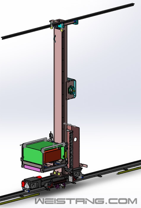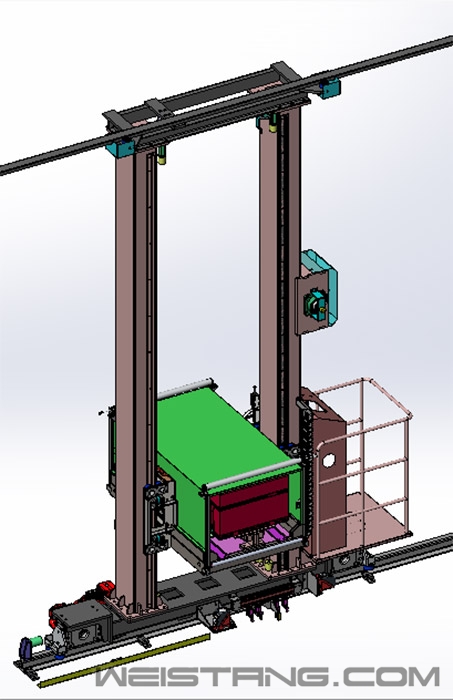 作为物流仓储系统中至关重要的一环,自动立体仓库一直备受各个有物流需求的行业关注。雷柏机器人在智能仓储物流领域不断深耕,在多个成功案例的实际应用中,总结出一些立库核心的设备和技术成果。今天我们就从自身的经验角度出发,向大家介绍目前雷柏机器人已经实现数字化的立库核心装备——堆垛机。 什么是堆垛机?堆垛机是自动化立体仓库输送系统的核心,是重要的起重运输设备。它在计算机技术操作下,在立体仓库的巷道间沿导轨道来回梭行,将位于巷道口的货物存入货位,或根据指令取出货位内的货物运送至巷道口,凭借机械化及自动化独立完成出入库作业。此外,堆垛机还能对进出信息作出及时处理,适应黑暗、低温等特别作业环境。 堆垛机由行走、提升和货叉三个驱动结构完成作业要求,采用国际先进的变频或伺服控制系统和激光认址系统进行全闭环控制,配合条码或激光测距等高精度认址方式,实现堆垛机高精度运行。 堆垛机种类繁多,从各类型划分可以知道有以下分类: 1.按立柱数量可分为单立柱、双立柱、多立柱堆垛机; 2.按地面轨道构成可分为单轨、双轨、多轨堆垛机; 3.按载货台工位数量可分为单工位、双工位、多工位堆垛机; 4.按存取货叉结构可分为单伸位、双伸位、多伸位堆垛机; 5.按存取型式可分为推拉货叉、夹抱货叉、辊链输送机构、动力台车机构堆垛机; 6.按运动方式可分为直轨型、 U型弯轨型、 M型弯轨、转轨车型等; 7.按驱动方式可分为单驱型、双驱型。 堆垛机分类方式多种多样,在智能仓储物流领域里,有几种堆垛机类型比较常见: 1.单立柱直轨型堆垛机:(如下图所示) 单立柱堆垛机的特点是其结构紧凑、适用于轻载高速仓储系统,多采用不同类型的传感器和双钢丝绳结构实现高安全性。适用场景多为库内周转率较高,运行速度较快、工作时间较长、货物重量低于100kg、立库高度小于10m的智能立体仓库,如新能源成品仓库、食品仓库、医药、电子行业成品及半成品仓库等。 2.双立柱直轨型堆垛机:(如下图所示) 双立柱堆垛机结构稳定、安全可靠、适用性强,适用于重载物流系统。机台上多安装不同类型的传感器和双钢丝绳结构以实现高安全性。适用场景多为库内周转率要求一般,运行速度一般、工作时间较长、货物重量大于200kg、立库高度大于10m的智能立体仓库,如新能源原材料仓库、汽车零配件仓库、钢铁行业成品仓库、化工行业原材料仓库,冷链存储仓库等。 3、U型轨道堆垛机:(如下图所示) 转弯堆垛机可实现一机多巷道配置需求,满足用户大储量,低效率的存储要求,降低系统一次性投资额度。常用于新能源成品仓库、钢铁行业成品仓库、汽车零配件仓库、冷链存储仓库等。 堆垛机结构特征 本文以双立柱直轨堆垛机为例,对堆垛机的各部分结构进行说明。 堆垛机主要由主体框架结构、载货台、水平运行结构、起升结构、货叉伸缩结构、起升导向轮装置、安全保护装置和电气装置等部件组成(见图1)。 |