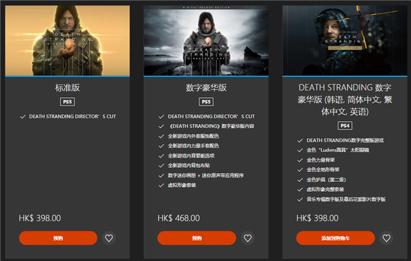 7月9日消息,今日凌晨,小岛工作室公布《死亡搁浅:导演剪辑版》全新宣传片,该游戏将于9月24日登陆索尼PS5平台。 拥有PS4版(含实体版)的玩家可花费10美元 升级为PS5导剪版“数字豪华版”。 据介绍,导剪版剧情任务、竞速模式、战斗系统强化、追加载具、同行机器人、建筑设施等内容,同时支持4K/60FPS。 目前《死亡搁浅:导演剪辑版》已在PS商店开启预购,PS5标准版售价398港币(约合人民币332.17元),PS5数字豪华版售价468港币(约合人民币390.59元),PS4数字豪华版售价398港币(约合人民币332.17元)。 据了解,PS5数字豪华版内容除游戏本体外,还包括全新游戏内外套服饰配色、全新游戏内力量手套配色、全新游戏内育婴舱选项、全新游戏内背包布贴、数字迷你画册 + 迷你原声带应用程序以及虚拟形象套装。 PS4数字豪华版包含《死亡搁浅》数字完整版游戏、以及金色“Ludens面具”太阳眼镜、金色力量骨架、金色全地形骨架、金色护具(第二级)、虚拟形象完整套装、音乐专辑数字版及幕后花絮影片数字版、数字迷你画册+迷你原声带应用程序。 资料显示,《死亡搁浅》是一款由Kojima Productions开发,索尼互动娱乐于2019年11月8日发售的动作游戏。 游戏讲述了主人公山姆必须勇敢直面因死亡搁浅而面目全非的世界,团结现存社会,拯救异空间人类的故事。 |