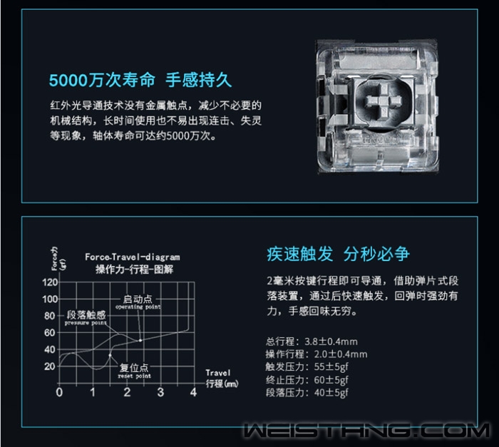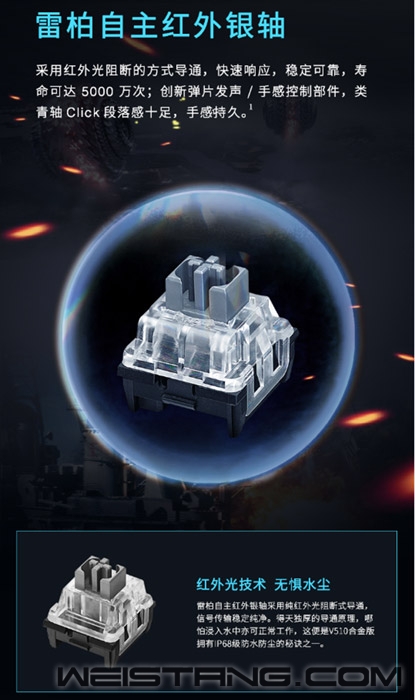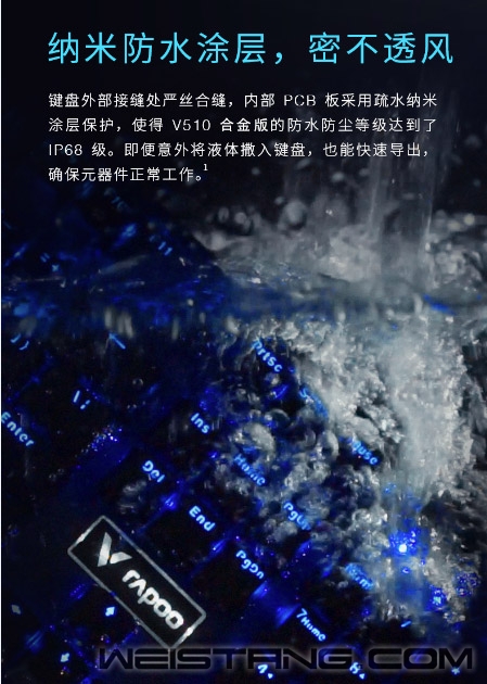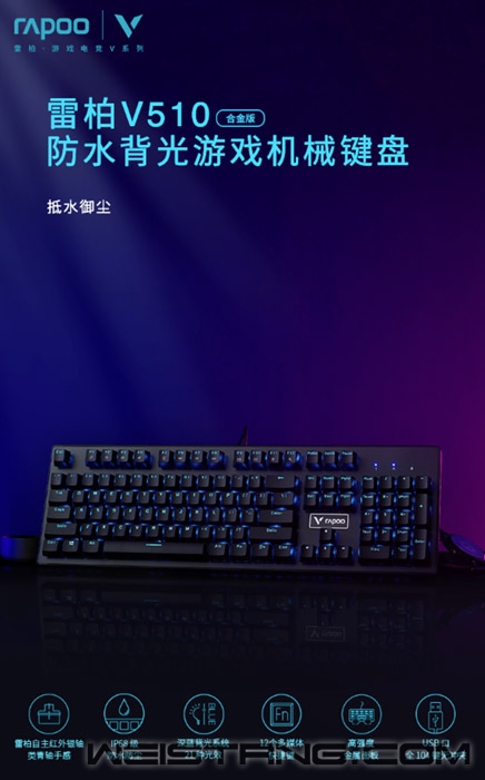 一款优秀的键盘,要有哪些功能?这次给大家分析的是领军国产外设的实力大厂上市企业雷柏Rapoo家的V510合金版防水背光游戏机械键盘。这款优秀的键盘采用了雷柏自主红外银轴,纳米防水涂层,深蓝色单色背光系统,金属面板,以及双色注塑键帽。这些功能创造出了V510合金版这个“深海强将”,并且上市仅需399,高品质高功能,为用户打造满分的电竞键盘。 V510合金版采用双色注塑悬浮键帽,透光均匀,远离字符褪色、磨损、模糊的困扰。搭配雷柏自主红外银轴,采用红外光阻断的方式导通,快速响应,稳定可靠,寿命可达到5000万次;创新弹片发声/每一次“Click”声都清楚反馈到用户,段落感十足,满满的电竞感。 既然是V510合金版,金属元素当然必不可少,键盘上盖采用加厚金属面板材料,结实耐用,提升键盘稳固性,金属冰冷的感觉从外观看上去非常高级。键盘外部接缝处严丝合缝,内部PCB板采用疏水纳米涂层保护,使V510合金版的防水防尘登记达到了IP68级。即使意外将液体撒到键盘上,也能够快速导出,确保元器件安全工作,这也是为什么小编称其为“深海战士”。 V510合金版还有这深海单色背光系统,蓝色与强悍的防水性能互相照应,使得“深海”元素更加浓厚。有着21种预设光效,支持全键光效自定义,超多玩法。 为了使玩游戏更尽兴,我们的雷柏大厂设计师贴心的采用了全键无冲突设计,确保每一个操作指令都能够准确响应。搭配Fn+F1~F12多媒体快捷键,快速切换多媒体播放、音量、调节等功能,在游戏激战时非常方便大家一键操控多媒体,这样的设计实在是太贴心。 从这款键盘来看,可以感受到雷柏设计师的用心良苦,海洋为元素核心的游戏键盘,从内到外都让人觉得,这是游戏键盘中的一名强将,不论是材质还是功能,都是高配。在键盘的背面能够看到做工以及用户体验对雷柏大厂来说是非常重要的,V510合金版的背面有着三向导线口和多块防滑脚垫,呵护玩家日常,简直是武装到了牙齿,这样的一款键盘,能不心动吗? |