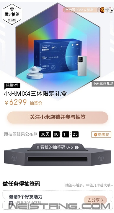 前不久,阔别三年的小米MIX系列迎来新成员——小米MIX 4,作为小米年度旗舰同时也是首款屏下前摄手机,小米MIX 4受到众多消费者期待。 日前,小米手机官方表示,小米MIX 4三体限定礼盒在京东小魔方正式上架,全球限量500套。 据介绍,此次小米联合三体IP,推出限量款小米MIX 4 限定礼盒,礼盒内含三体悬浮香薰套装。 由于采用抽签的方式进行售卖,因此中签者还可获得刘慈欣签章典藏版《三体》书籍一套。 活动时间,从8月12日-8月19日12:00结束并公布结果,8月19日20:00购买截至。 抽签页面显示,小米MIX 4三体限定礼盒售价6299元。 性能上,小米MIX 4行业首发骁龙888+处理器,X1超大核主频提升至3.0GHz,AI性能提升23%。 同时新增均衡模式,在此模式下,小米MIX4将限制能耗,控制发热。 显示方面,小米MIX 4首创“微钻排列”,在维持像素数量及RGB比例不变的情况下,缩小子像素面积,减少光线遮挡,实现100%全像素显示。 完美解决了CUP区域马赛克、纱窗、像素密度和显示精度等问题,使分辨率达到400PPI。 除了CUP屏下摄像头技术之外,MIX 4还首发轻量化一体精密陶瓷,不仅保持了温润如玉的手感,还使陶瓷重量降低了30%,整机厚度8.02mm,重225克。 续航方面,小米MIX 4内置4500mAh容量电池,支持120W有线、50W无线秒充。 |