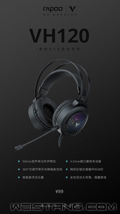 雷柏VH120 RGB游戏耳机,听辨位置测试过关。 发现猎物的位置,正面突破发起猛攻, 如灵光般迅速,一击制胜。 从网状的缝隙丽透出一缕缕光, 成为耳机最闪亮的一点, 三区域RGB背光,视觉精神充能, 步移光动比未来感黑色瞩目。 50mm发声单元助攻 包耳式大耳罩加持, 嵌入高密度惰性海绵, 降低外界杂音,听感出色, 听声辨位效果到位。 纯黑机密头上适配,每一声都在舒适区, 镂空柔性钢梁设计, 悬浮式头自动适应头部大小, 降低压夹感,体验随处张扬。 VH120在兼容性上做足了文章, 3.5mm耳麦接口,适合移动设备等耳麦二合一设备, 3.5mm耳机/麦克风音频接口,适配传统PC设备, 360°可调节带开关降噪麦克风,全方位收音,开黑语音传输清晰 一键开启/关闭功能,灵活搭配选择,匹配战术。 戴上耳机,游戏效果更佳。 VH120搭载50mm的发声单元,拥有富足的功率和瞬态爆发力,呈现密集的团战大战音效,解析复杂的战争游戏音效,让你仿佛身临其境般的紧张刺激。 麦克风是360°可调节带开关的降噪麦克风设计,自由调节麦克风角度,高灵敏全方位收音,智能识别环境中的非人声频率,并加以抑制,确保语音沟通纯粹清晰,还可一键开启/关闭麦克风。 VH120使用智能悬浮式的头戴,海绵的内衬,可根据不同头型的大小,自适应伸缩调节,降低佩戴时的压夹感。网状的RGB背光,三区域光谱循环闪亮绽放,犹如黑夜里耀眼夺目的璀璨星光。 拥有大尺寸的全包耳式柔软耳罩,结合高密度的惰性海绵,触感柔软细腻,更好的包裹效果,降低环境噪音的干扰,稳固舒适,体验更佳。量化的合金头梁,坚固耐用。抗拉扯的线材,防暴力拉扯。 VH120配备了双3.5mm的耳机/麦克风音频接口,适配传统PC设备,加入3.5mm的音频转换线,适配手机,平板等耳麦2合1的设备,增强设备兼容性,可在多个设备之间来回切换,操控游戏,休闲娱乐,随心而想。 |