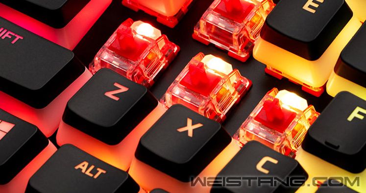 当仁不让 游戏竞技型自主键轴 使用非游戏键盘时,玩家最常遇到的问题就是,游戏激战时明明按下了按键,结果键盘没有反应,或者明明按了两下,结果只触发了一次,触发不精准带来的误操作往往都是致命的。如果是日常使用,经常敲错字也会极大影响效率,使用体验自然也是不好的。所以,选键盘先选键轴,键轴选对了,好键盘就算成功一半了。 HyperX在推出自主键轴后收到无数玩家好评,特别是对于游戏内稍纵即逝的战机,迅速响应,精准触发,是游戏玩家的基本要求;润滑度好,手感出色则是游戏玩家给予游戏机械键盘的更高要求。HyperX 阿洛伊精英2游戏机械键盘采用了HyperX自主火轴,它的设计理念就是可以满足游戏玩家最苛刻的要求。 HyperX火轴属于线性轴,其运动轨迹呈现笔直的一条线,直上直下的风格丝毫没有拖泥带水的痕迹,触发弹力只需要45g,触发行程只有1.8mm,总行程3.8mm,在所有机械键轴中属于较轻型,且易触发的键轴,较其他键轴跟容易实现连击或者三连击,对于FPS类动作游戏尤其适合。