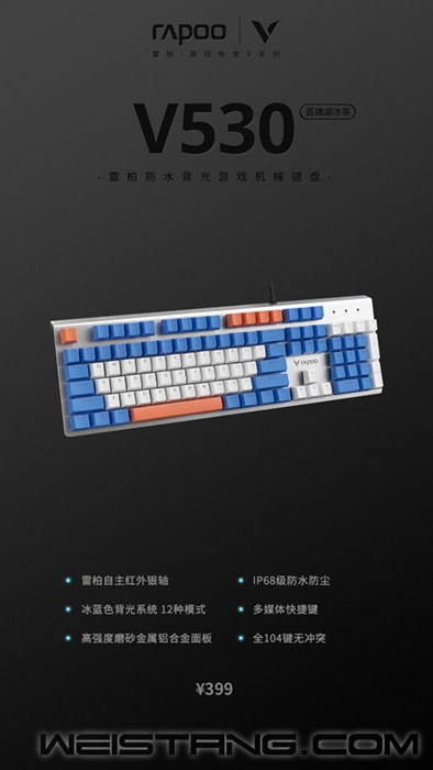 蓝礁湖的落日余晖下,一束幽蓝之光在湖面的起伏中隐隐闪动,隐匿于黑夜中的硬朗轮廓与三色甲板愈渐清晰,集合发射的光束在红外透视中交错移动,蓝礁战舰—雷柏V530蓝礁湖冰茶版防水背光游戏机械键盘正在驶进...... “流白战甲冲刺银光舰岛,蓝礁之役欲要旷日再起” 铝合金上盖悬浮式设计,持久耐磨银光大作 雷柏兵工场双色注塑工艺加持,蓝白红三色涂装以1:7:9黄金比例呈现于轻盈机甲,适度饱和调色是对操纵者视觉耐久的保障,也是对光纤交错背后的敌人,无需多言的立战示警。数百字符清晰可辨地印刻于每块甲胄,纵横交错却又整齐划一的悬浮于铝合金舰岛之上,隐隐银光透过每一寸均匀缝隙躲空而出,一如战役打响前的静默夜空,无声无息却又遍布杀机待发。 —甲板结构剖析— 雷柏V530蓝礁湖冰茶版防水背光游戏机械键盘,将ABS双色注塑键帽与铝合金上盖融合一处,带来十足科技感的视觉感受与细腻耐磨的使用触感。视觉触觉双双沉浸入局,等一个蓝礁日落,先声夺人,引爆旷日之役。 “束发制导引爆秘隐敌情,万丈浪起亦可纤尘不染” 红外银轴结合IP68级防水,疾速反应也密不透风 104个指挥塔均匀嵌于舰身表面,如果组合构成的制导系统是整舰疾速反应的技术堆叠,那么红外光阻断式导通方式则是精确制导的技术基石。无冲突,104式红外光线齐发,它们正以透视黑夜的红外牵引,将万里相隔的敌军窝点精确定位,让每一位操纵者无惧瞬发战斗实况,以手势代替言语,无误差地执行极限意识与战斗排布。在此基础上,我们为舰体内部涂装纳米级防水涂层,即便旷日战役没有丝毫停歇,也可保证精密结构的正常工作,只为蓝礁战舰万里作战,提供持久运行保障。 —武器装备解构— 雷柏V530蓝礁湖冰茶版防水背光游戏机械键盘,轴体采用雷柏自主红外银轴,利用红外光阻断的导通方式,手感清脆,带来快速响应与超长寿命。搭配键盘内部纳米防水涂层,IP68级别的防水认证加持,让每一只战舰于航行中,即便历经万层浪起与残骸纷飞,亦可不染纤尘,满状态持久作战。 “冰蓝相控牵引双侧灯发,夜黑如电静待日落再役” 预设光效配合双侧RGB,12种灯效战到天明 当104个小型指挥集群散发出幽然冰蓝光芒,作为操作者的你,就应该清晰的明白,战役已经进入了没有停息可言的白热阶段,以同一频率闪烁的灯语模式是将弹药再次装备的通讯信号,没有丝毫延迟的明灭是汹涌战斗意志无言的嘶吼,12种特殊战斗灯语等待你时刻调遣,由此牵引位于舰身两侧的RGB灯光,组合引动属于你的下一次蓝礁奇袭。 —示警系统展示— 如影随行、浮光掠影、峰回路转……12种灯光特效,搭配双侧RGB氛围灯条等待专属于你的战斗灯语下达。静待日落时分,雷柏V530蓝礁湖冰茶版防水背光游戏机械键盘用幻彩灯光诠释,一艘不灭战舰,高调而又不可阻挡的,极夜奇袭。 “次世代武器集合装备,蓝礁之役毁灭你与你何干” 蓝白红三色ABS键帽引动战斗号角,铝合金上盖幽浮于键帽之下,打造稳定使用基石,加入雷柏自主红外银轴体释放疾速操控,配备纳米级防水涂层赋能IP68级防水防尘。全能挂载的V530蓝礁湖冰茶版游戏机械键盘,铸造独属于你的达摩克利斯之剑,用幽蓝之光悬挂每一寸敌军遗骸——蓝礁之役毁灭你与你何干? 那么这一次 我的驶舰者 你准备好 再次开启隐藏于蓝礁湖冰茶背后的 旷日战役了吗? |